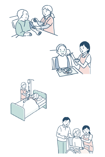 血圧・体温・脈拍などの測定 ご家族の状況に配慮した介護指導・精神的サポート